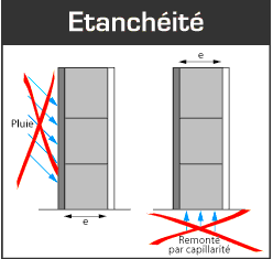 Plus de pénétration d'eau dans les murs, plus de remontée par capillarité. Le bloc monomur Cogetherm® est le SEUL dans sa catégorie des blocs MONOMUR, à posséder une amplitude de variation dimensionnelle de 0,27 mm/m.(La norme NF P 12-023-2 exige une amplitude de la variation dimensionnelle des blocs au plus égale à 0,45 mm/m).